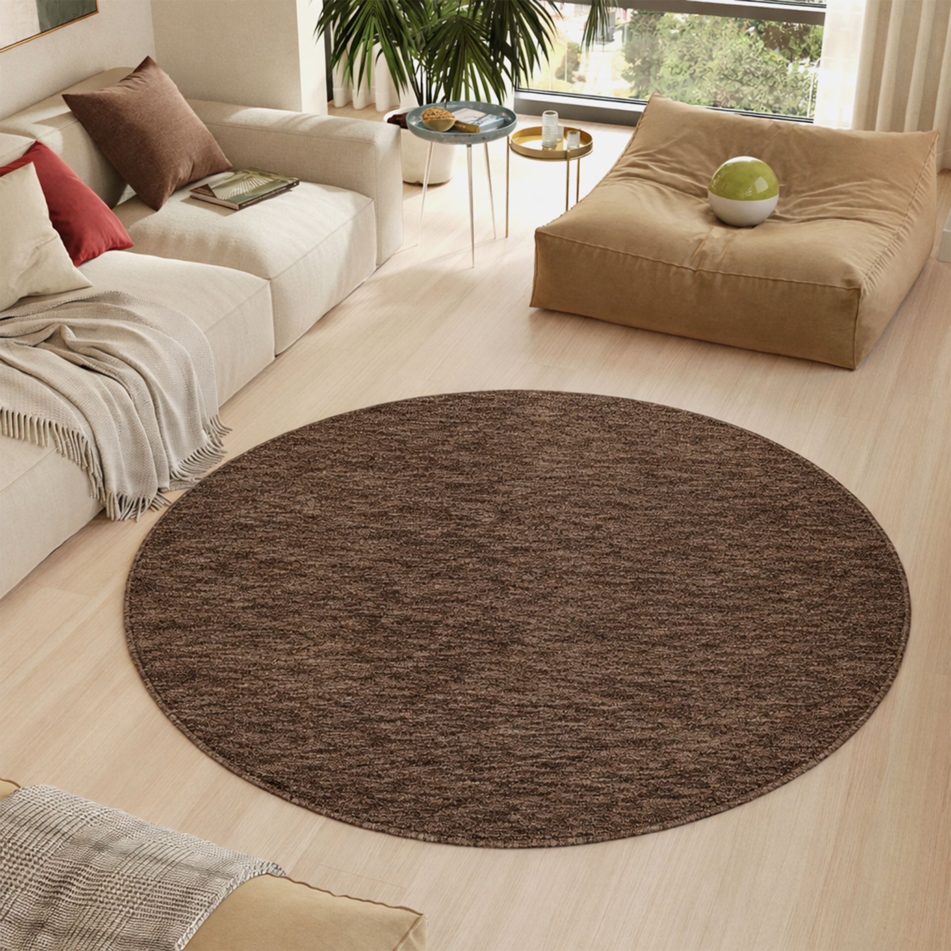 Nizza Kanuni Koło to kolekcja dywanów jednokolorowych o delikatnych, naturalnych barwach. Idealnie sprawdzi się w pomieszczeniach, w których takie dodatki narażone są na codzienne zabrudzenia, czyli np. w kuchni, przedpokoju czy jadalni. Posiadają specjalne wypustki, które sprawiają, że są antypoślizgowe. Dywany Nizza Kanuni Koło posiadają niskie runo o wysokości 6 milimetrów, co sprawia, że utrzymanie ich w czystości nie sprawia większego problemu. Przyjemne, zbite włosie jest bardzo praktyczne, ponieważ ewentualne kawałki jedzenia czy drobne kamienie/piasek nie wnikają w głąb dywanu. Z łatwością można je usunąć zmiotką, odkurzaczem czy ściereczką. Kolekcja Nizza Kanuni Koło posiada filcowy spód, doskonale wytłumi dźwięki w naszym pomieszczeniu. Dodatkowo będzie izolować ciepło, a także spotęguje estetykę wnętrza.
