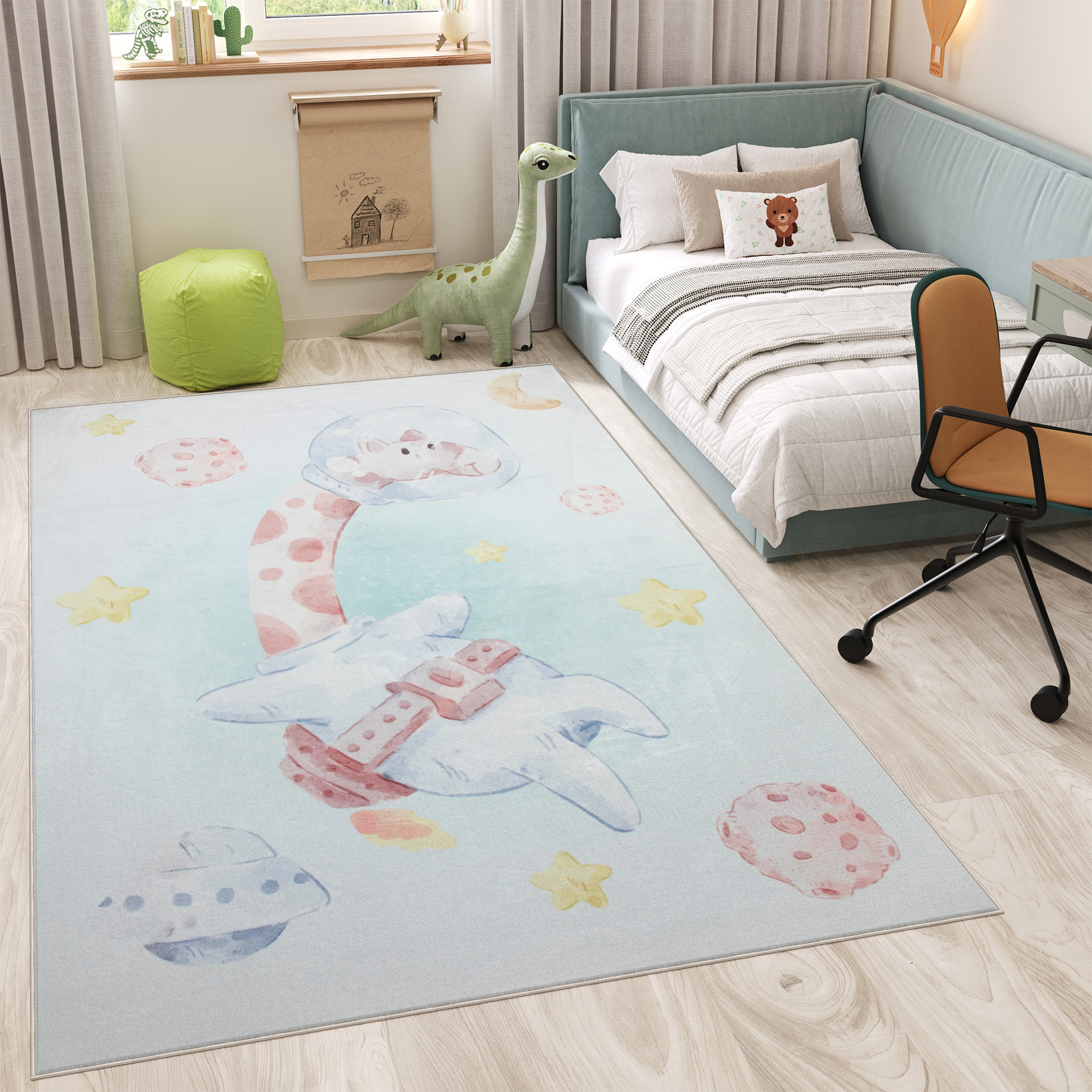 Aranżując przestrzeń dla dziecka, powinniśmy wziąć pod uwagę przede wszystkim oryginalność zastosowanych wzorów, a także zdecydowaną kolorystykę. Idealną odpowiedzią na zadane kryteria jest kolekcja dywanów Kind/Kinder, które przypadną do gustu zarówno małym dziewczynkom, jak i chłopcom. Mnogość dostępnych rozmiarów, które umożliwiają swobodne dopasowanie ich do wielkości i układu pokoju oraz bogata kolorystyka będąca doskonałym tłem dla utrzymanych dodatków sprawi, że dywany Kind/Kinder znajdą zastosowanie w każdej zajmowanej przez dzieci przestrzeni. Co ważne, miękkie, sprężyste runo zabezpieczy stopy smyka przed chłodem, jednocześnie gwarantując mu doskonałe miejsce do wesołej zabawy.