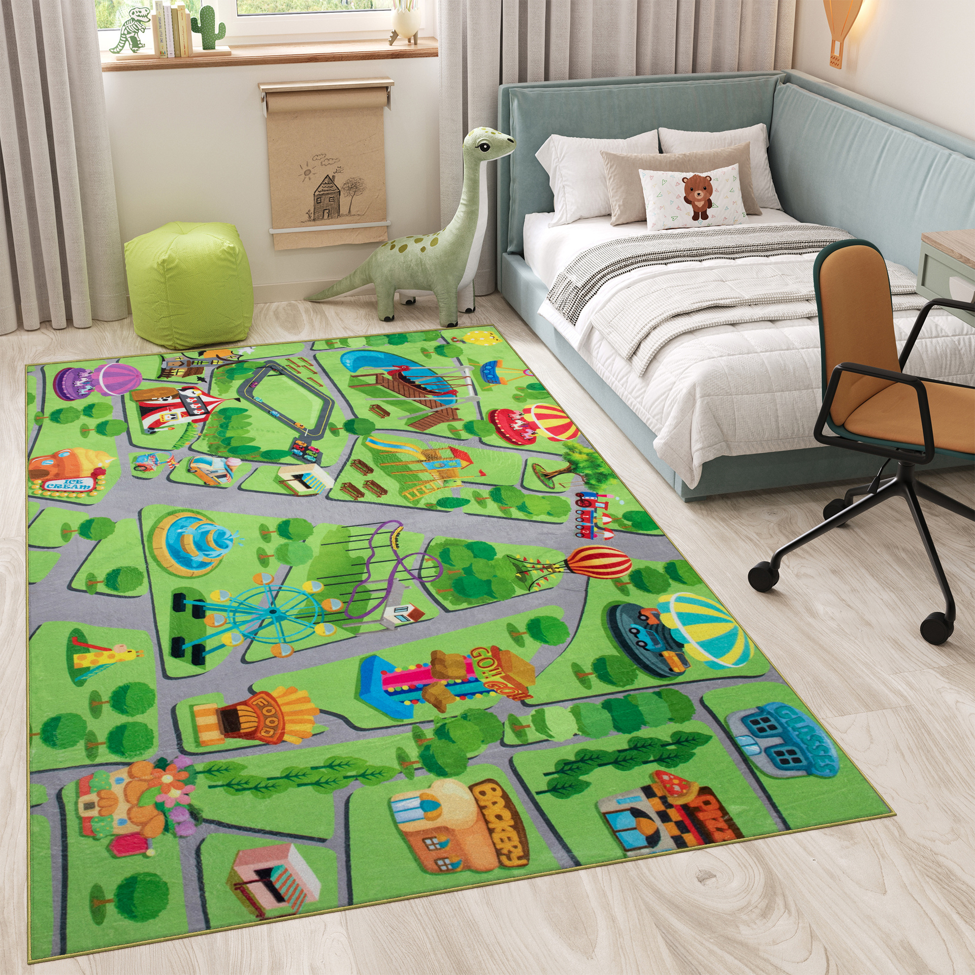 Aranżując przestrzeń dla dziecka, powinniśmy wziąć pod uwagę przede wszystkim oryginalność zastosowanych wzorów, a także zdecydowaną kolorystykę. Idealną odpowiedzią na zadane kryteria jest kolekcja dywanów Kind/Kinder, które przypadną do gustu zarówno małym dziewczynkom, jak i chłopcom. Mnogość dostępnych rozmiarów, które umożliwiają swobodne dopasowanie ich do wielkości i układu pokoju oraz bogata kolorystyka będąca doskonałym tłem dla utrzymanych dodatków sprawi, że dywany Kind/Kinder znajdą zastosowanie w każdej zajmowanej przez dzieci przestrzeni. Co ważne, miękkie, sprężyste runo zabezpieczy stopy smyka przed chłodem, jednocześnie gwarantując mu doskonałe miejsce do wesołej zabawy.