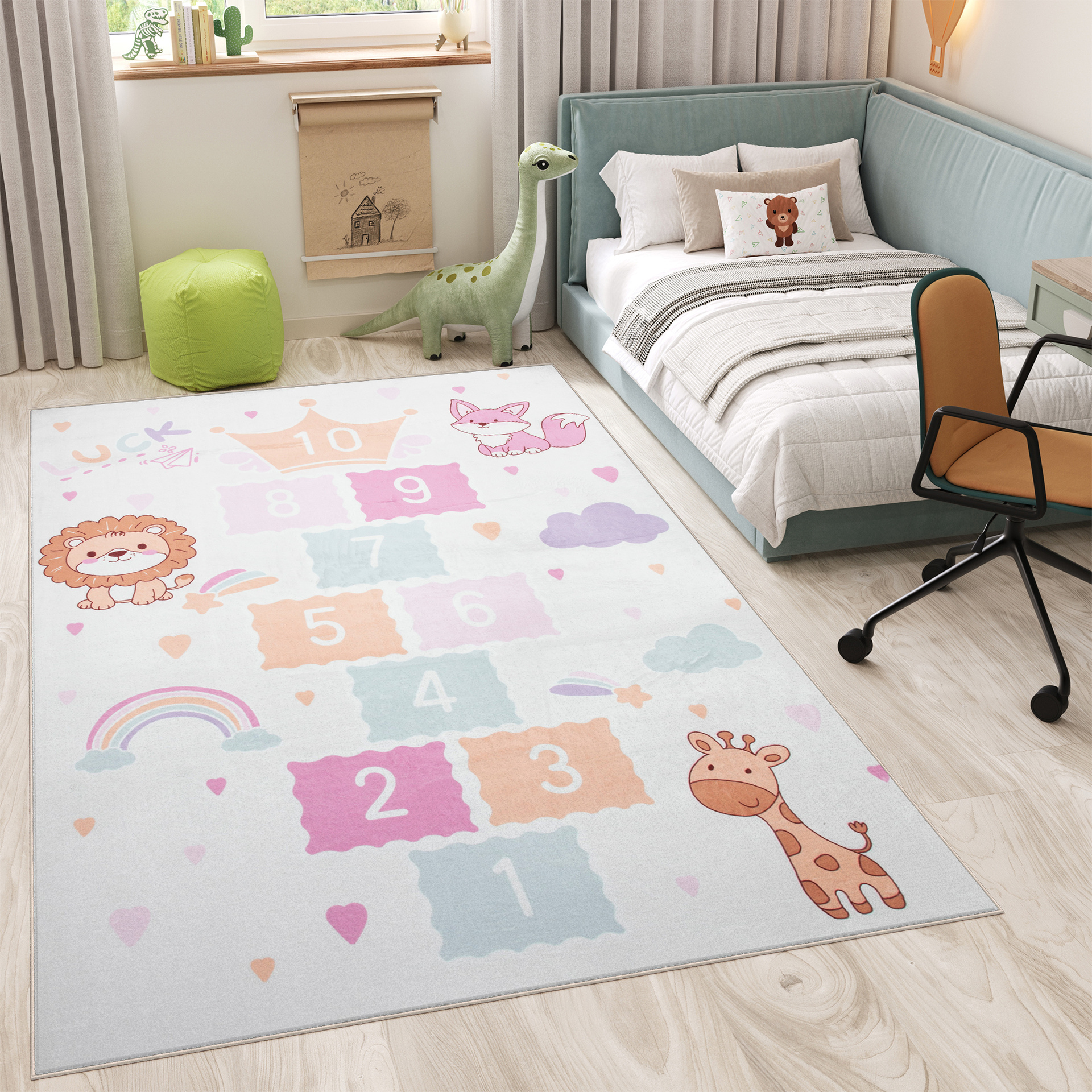 Aranżując przestrzeń dla dziecka, powinniśmy wziąć pod uwagę przede wszystkim oryginalność zastosowanych wzorów, a także zdecydowaną kolorystykę. Idealną odpowiedzią na zadane kryteria jest kolekcja dywanów Kind/Kinder, które przypadną do gustu zarówno małym dziewczynkom, jak i chłopcom. Mnogość dostępnych rozmiarów, które umożliwiają swobodne dopasowanie ich do wielkości i układu pokoju oraz bogata kolorystyka będąca doskonałym tłem dla utrzymanych dodatków sprawi, że dywany Kind/Kinder znajdą zastosowanie w każdej zajmowanej przez dzieci przestrzeni. Co ważne, miękkie, sprężyste runo zabezpieczy stopy smyka przed chłodem, jednocześnie gwarantując mu doskonałe miejsce do wesołej zabawy.