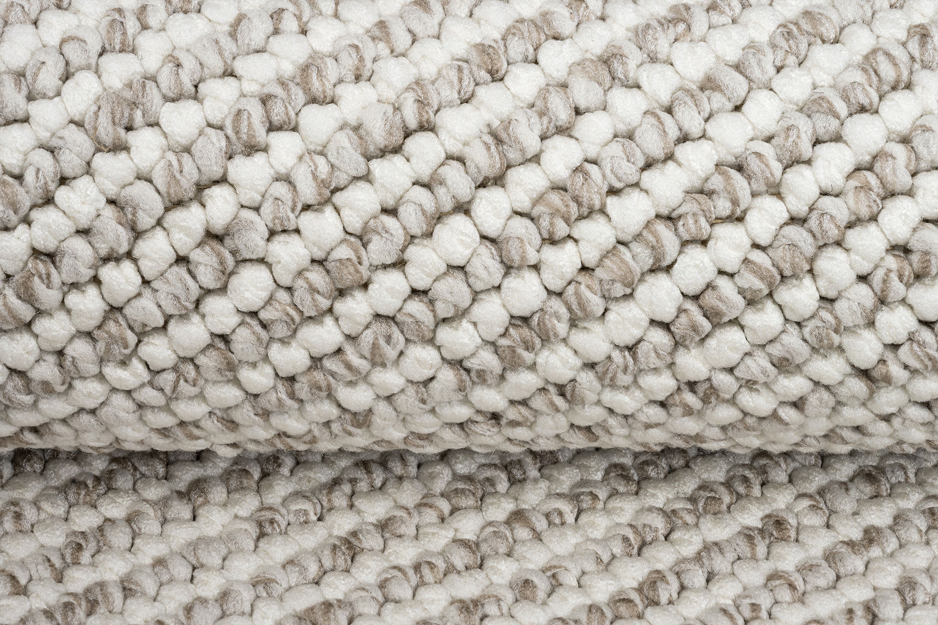 Charakterystyczne pętelkowe runo nadaje dywanowi wyjątkową strukturę i podkreśla jego elegancki wygląd. Dzięki wysokiej gęstości i solidnej wadze dywan cechuje się dużą odpornością na ścieranie oraz trwałością, co czyni go idealnym wyborem do intensywnie użytkowanych pomieszczeń.