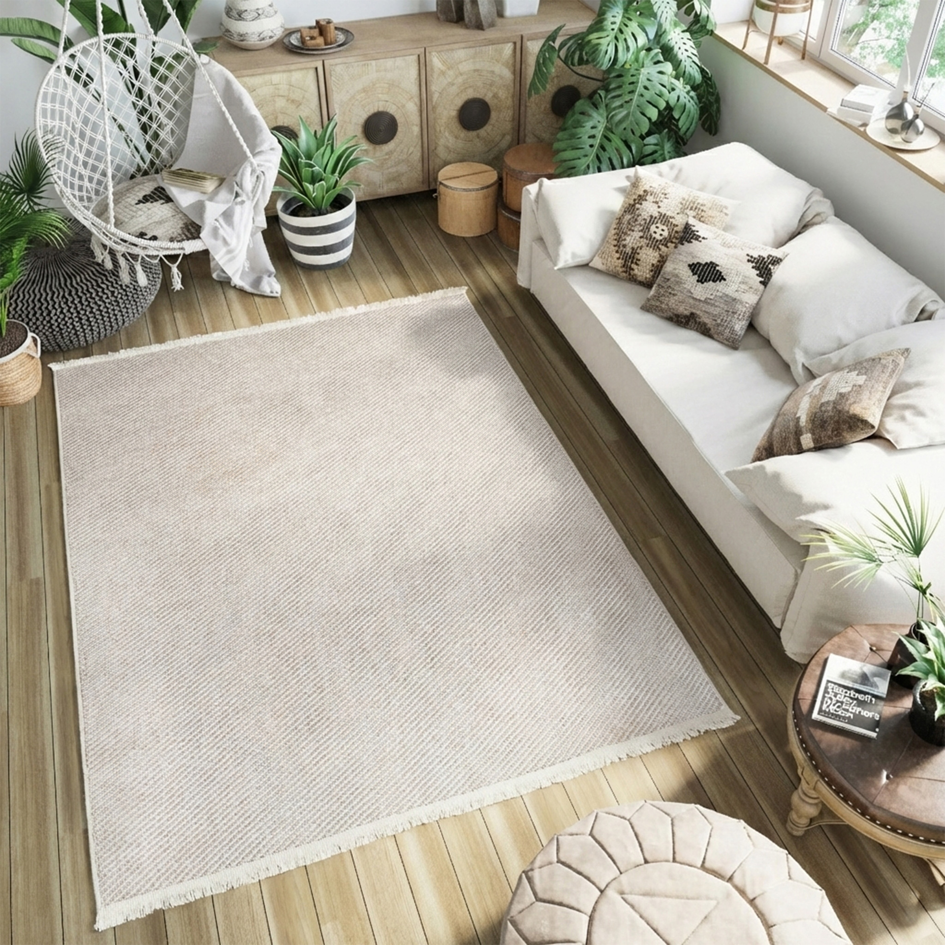 Dywan AGRA wyróżnia się również wysokim współczynnikiem przewodnictwa cieplnego, dzięki czemu świetnie sprawdzi się w pomieszczeniach z ogrzewaniem podłogowym. Gustowne frędzle stanowią dodatkowy element dekoracyjny, który nadaje dywanowi unikalnego charakteru i podkreśla jego styl.