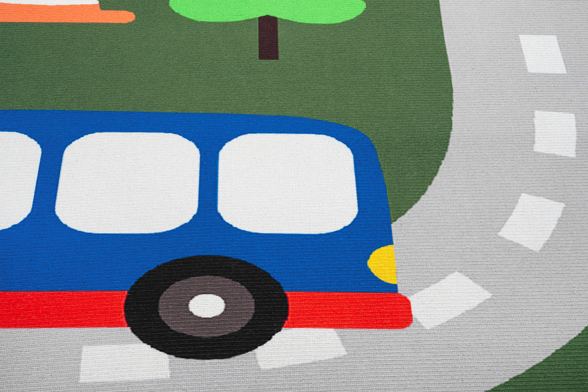 Runo dywanów SNOOKI wykonane jest w 100% z poliestru, co zapewnia miękkość, trwałość oraz łatwość utrzymania w czystości. Niska wysokość runa (5 mm) sprawia, że dywan jest wygodny do zabawy, nie utrudnia przesuwania zabawek i jest łatwy do odkurzania.