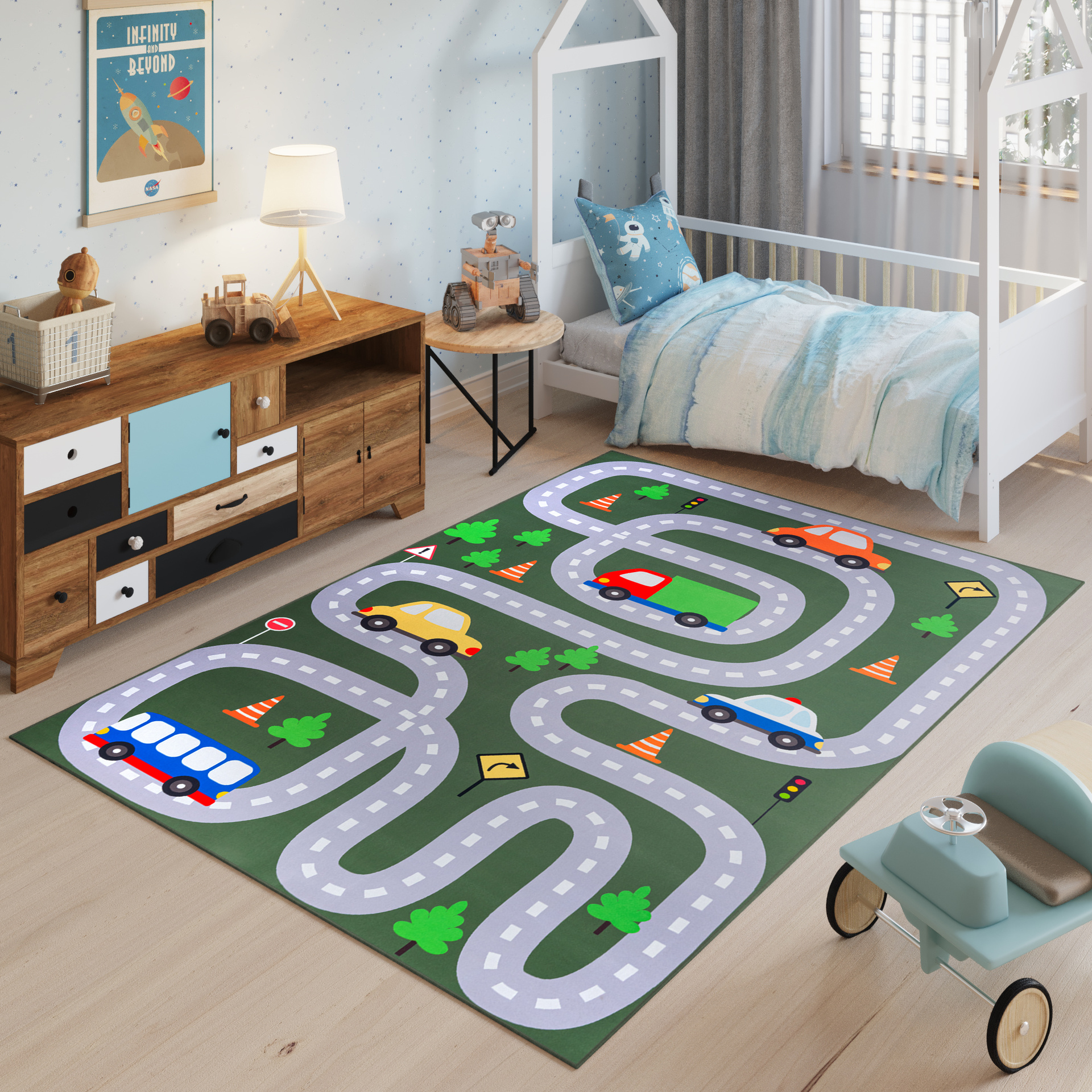• dywan edukacyjny z motywem dróg lub miasta,
