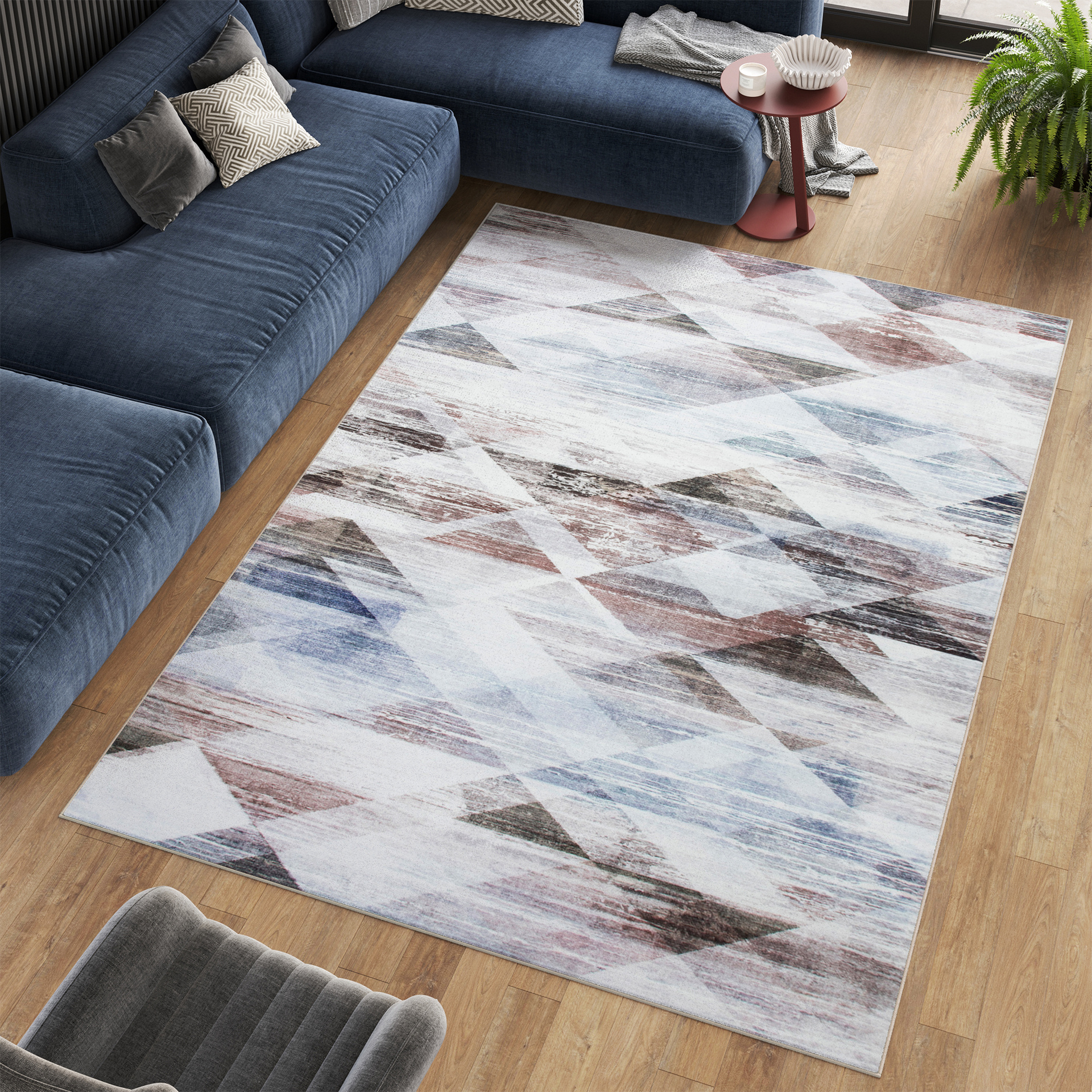 Dominujące odcienie szarości, beżu, grafitu oraz delikatnych akcentów kolorystycznych sprawiają, że dywany stanowią eleganckie tło dla aranżacji, jednocześnie nadając wnętrzu charakteru i głębi.