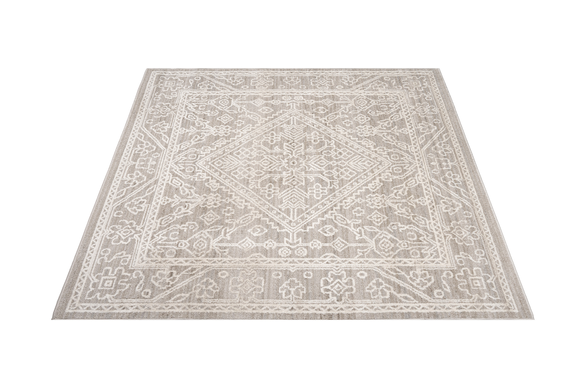 Dzięki wysokiej gęstości runa (243 200 pkt/m²) wzory są wyraźne, a powierzchnia dywanu prezentuje się solidnie i estetycznie.