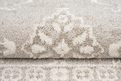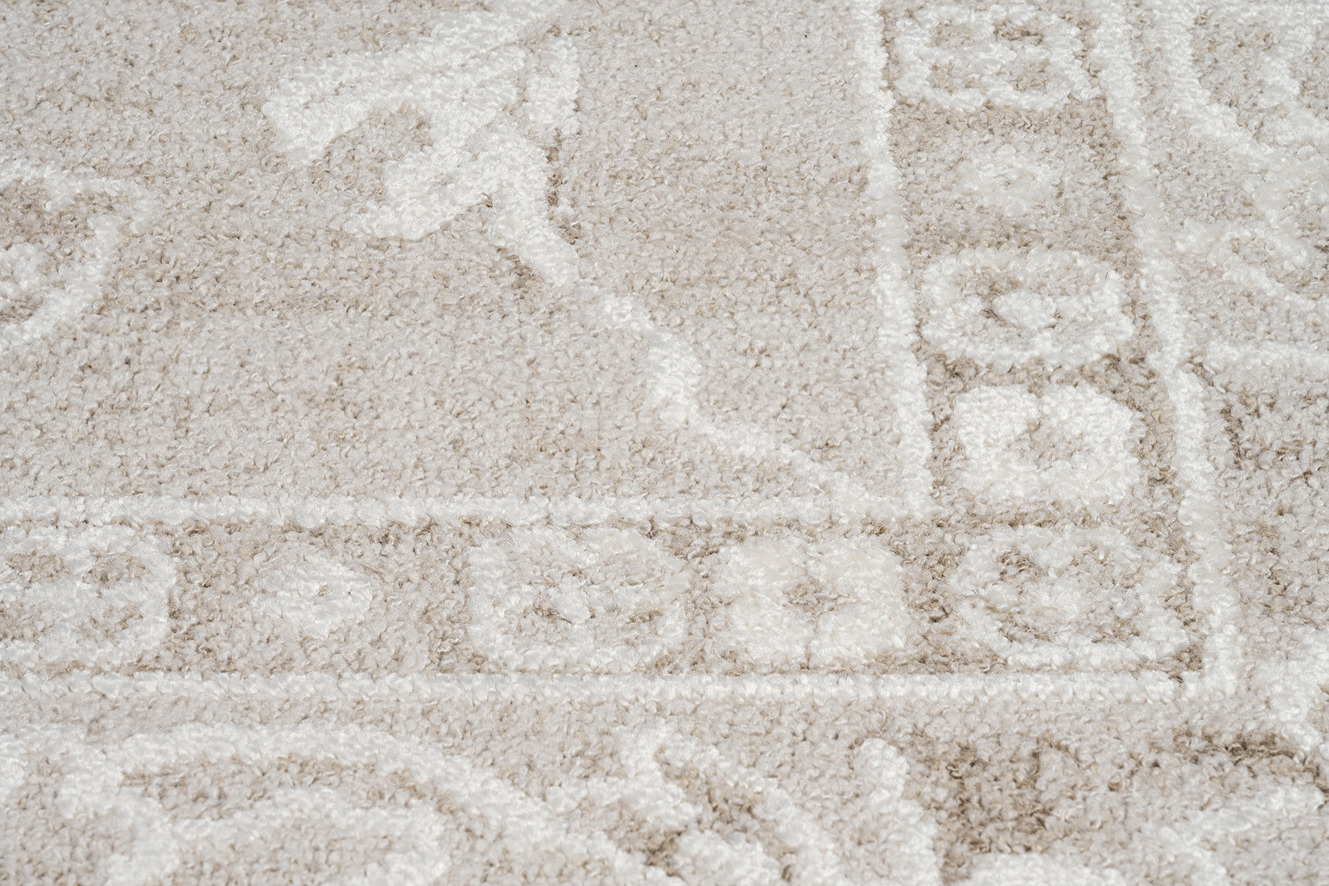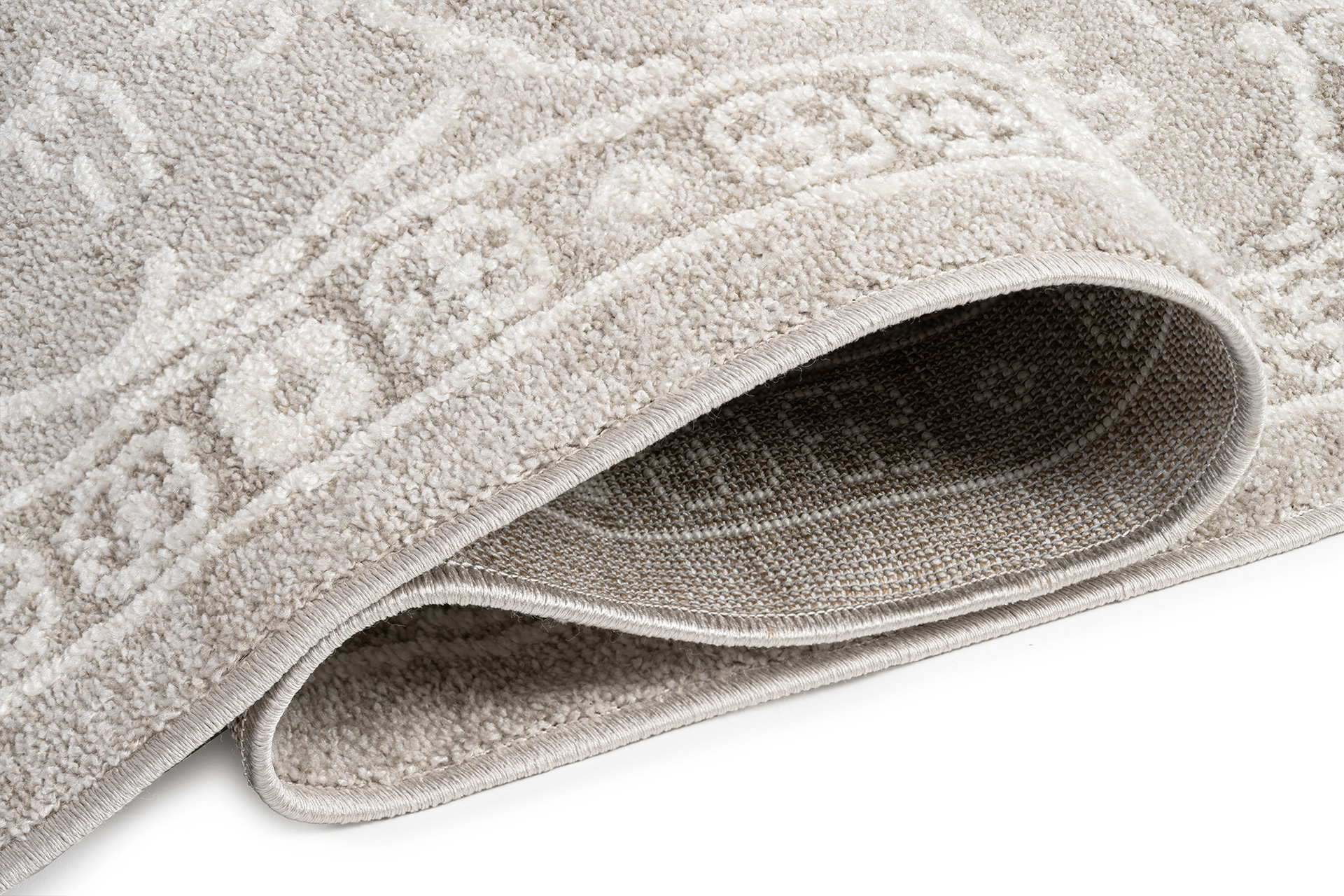 Dzięki wysokiej gęstości runa (243 200 pkt/m²) wzory są wyraźne, a powierzchnia dywanu prezentuje się solidnie i estetycznie.