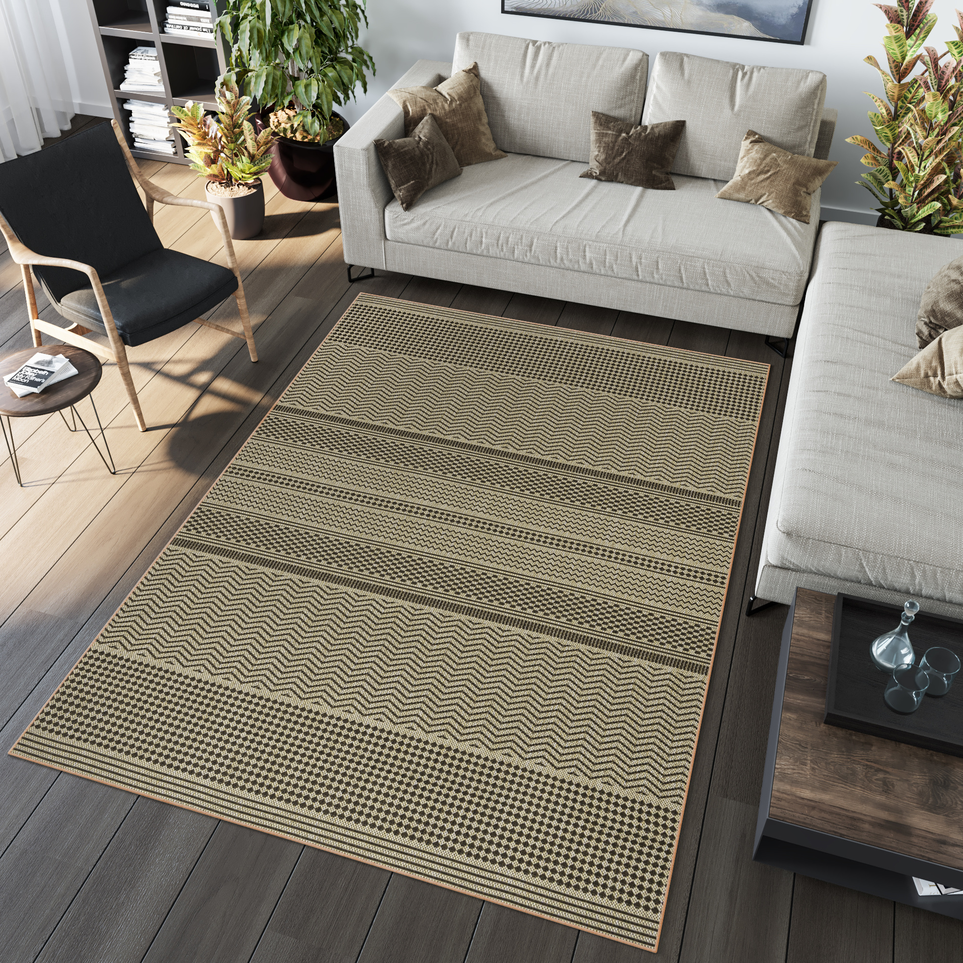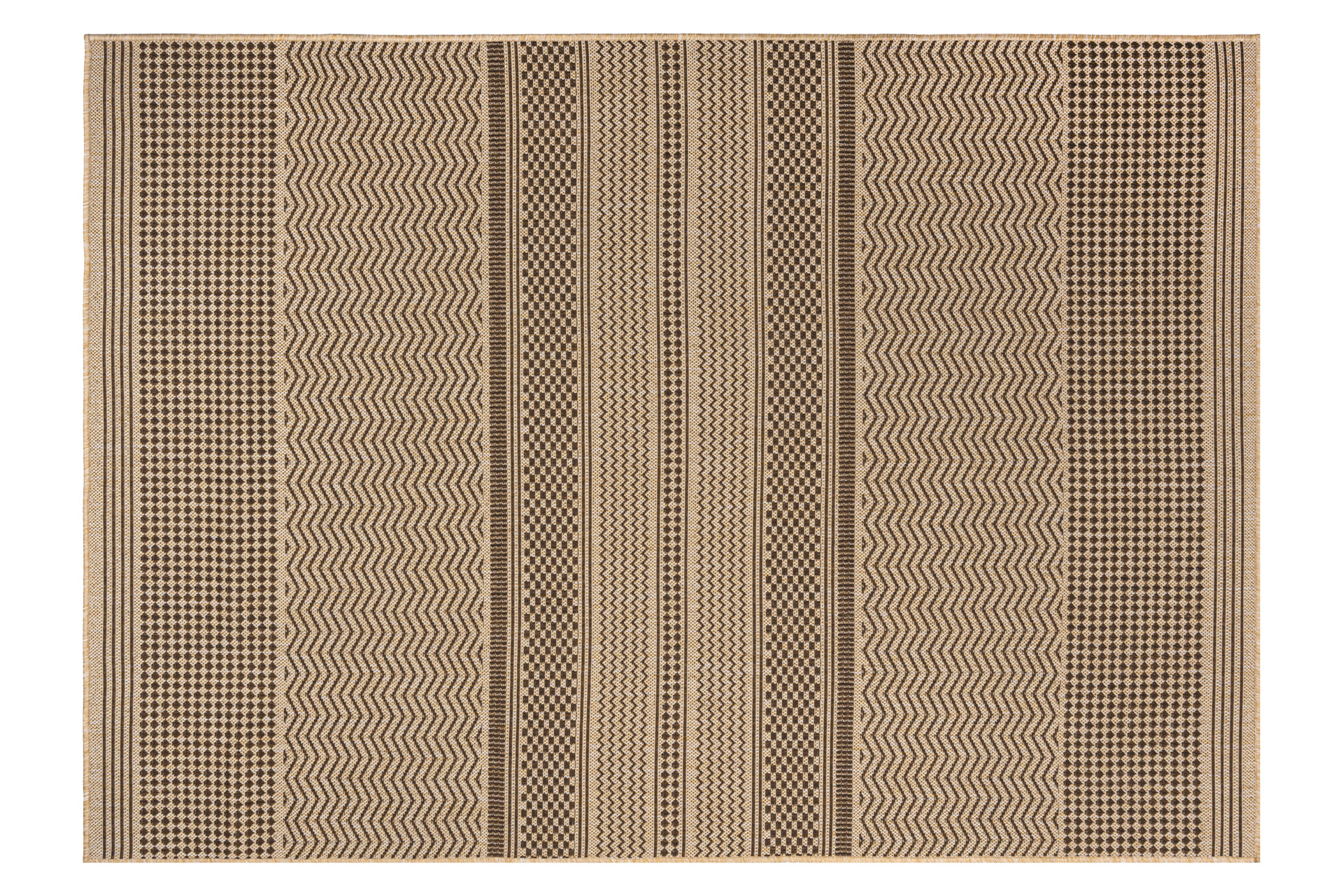 Dominują tutaj odcienie beżu, brązu, szarości oraz czerni, często w formie subtelnych wzorów, ramek czy geometrycznych kompozycji. Dzięki temu dywany są eleganckie, ale jednocześnie uniwersalne i łatwe do dopasowania do różnych aranżacji.