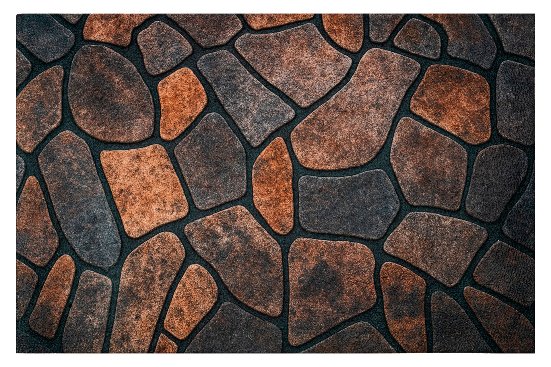 Wierzch wykonany jest z poliestrowego włókna z wyraźnym, estetycznym nadrukiem - dzięki czemu wycieraczka jest nie tylko praktyczna, ale również stanowi element wystroju. Na spodzie znajduje się antypoślizgowa guma, która stabilnie trzyma się podłoża i zapobiega przesuwaniu się maty podczas użytkowania.