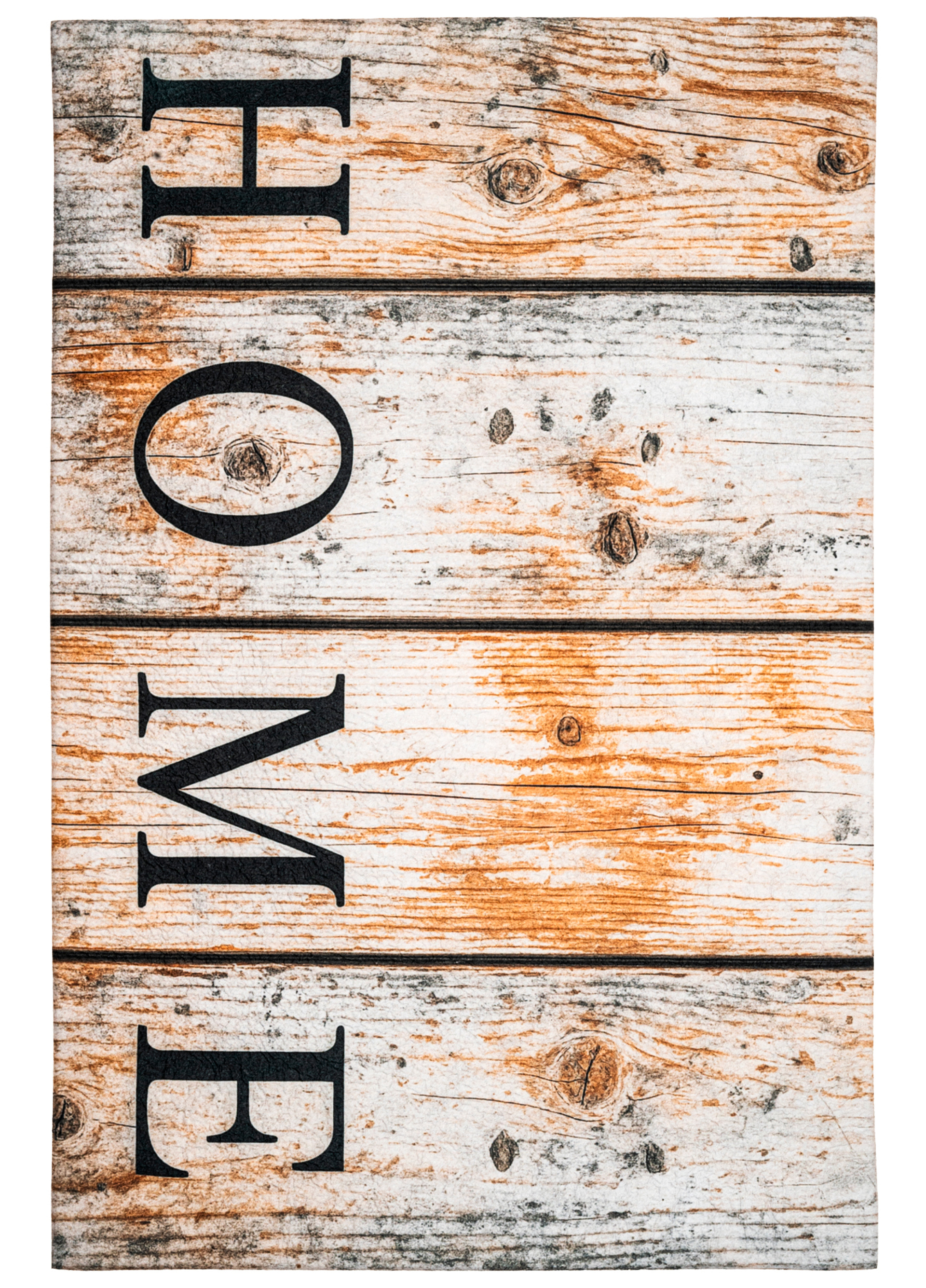 Wierzch wykonany jest z poliestrowego włókna z wyraźnym, estetycznym nadrukiem - dzięki czemu wycieraczka jest nie tylko praktyczna, ale również stanowi element wystroju. Na spodzie znajduje się antypoślizgowa guma, która stabilnie trzyma się podłoża i zapobiega przesuwaniu się maty podczas użytkowania.