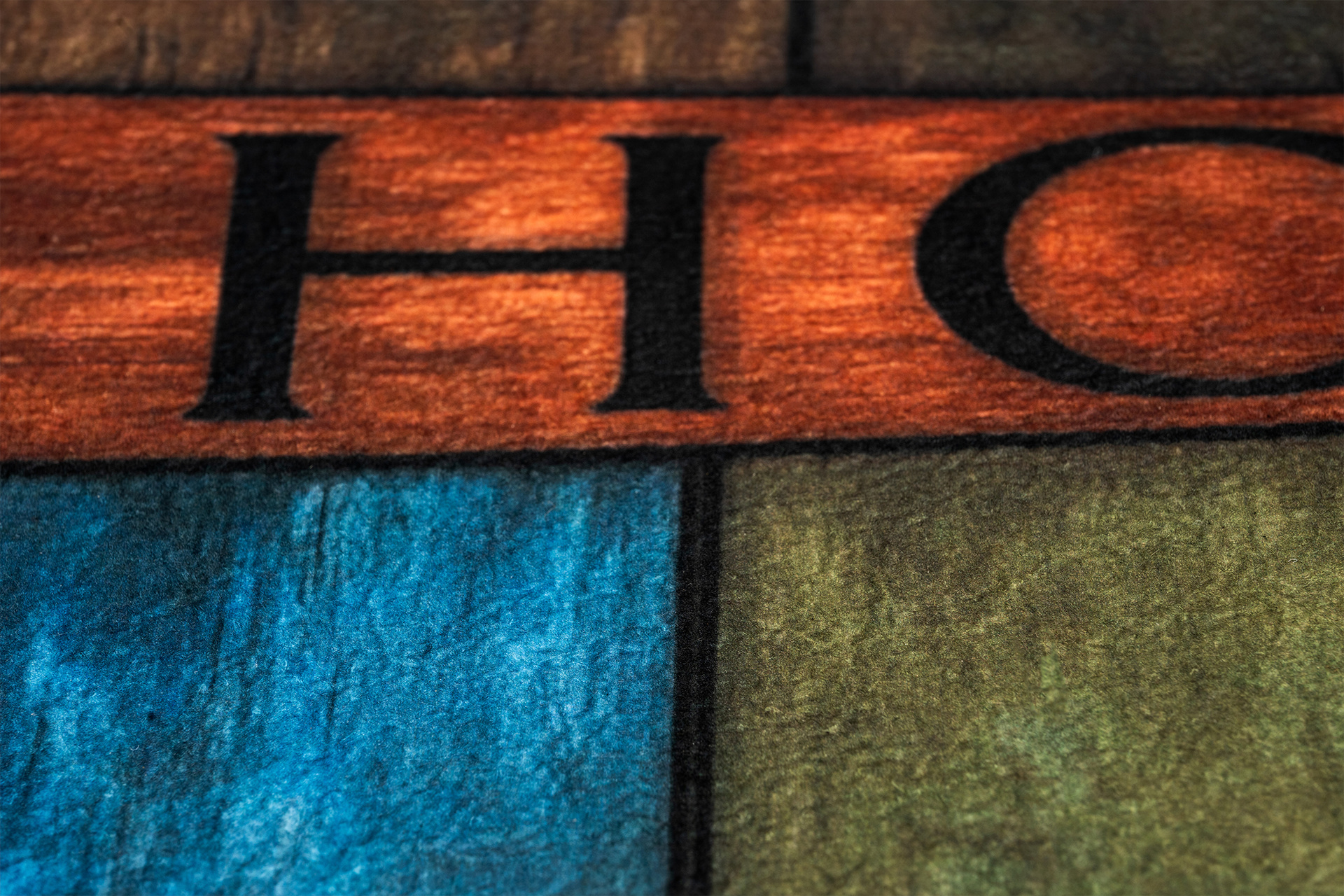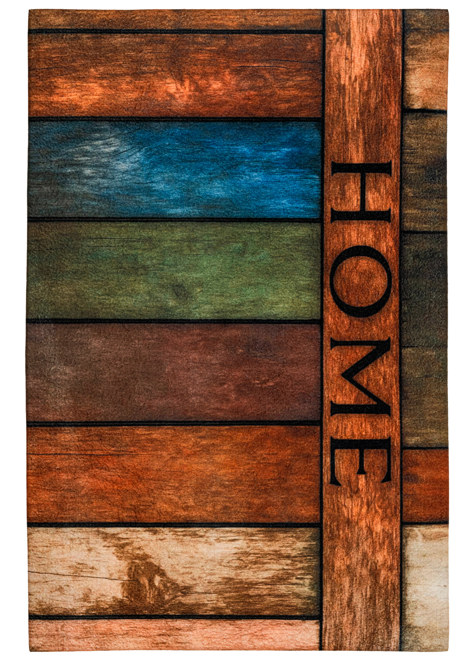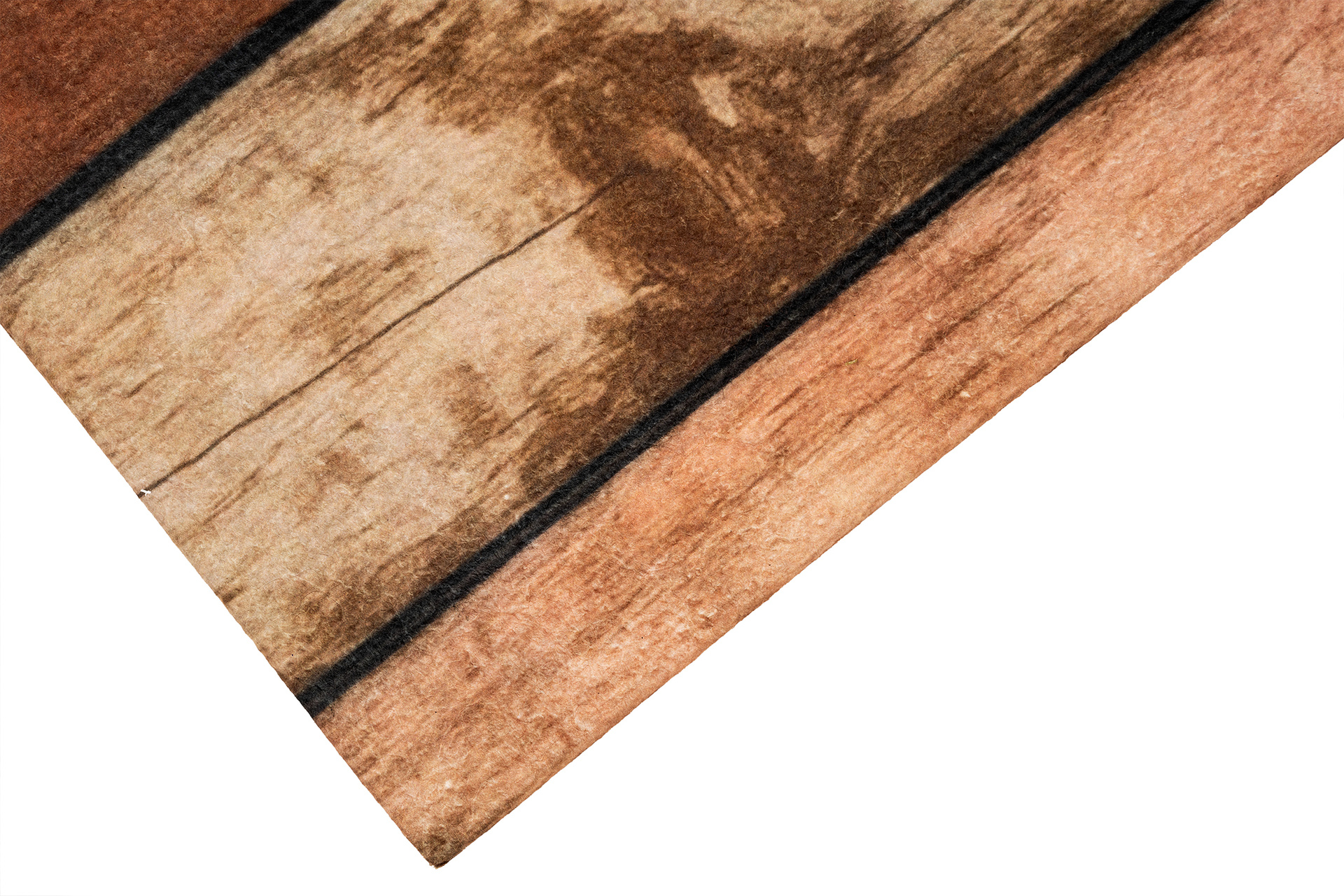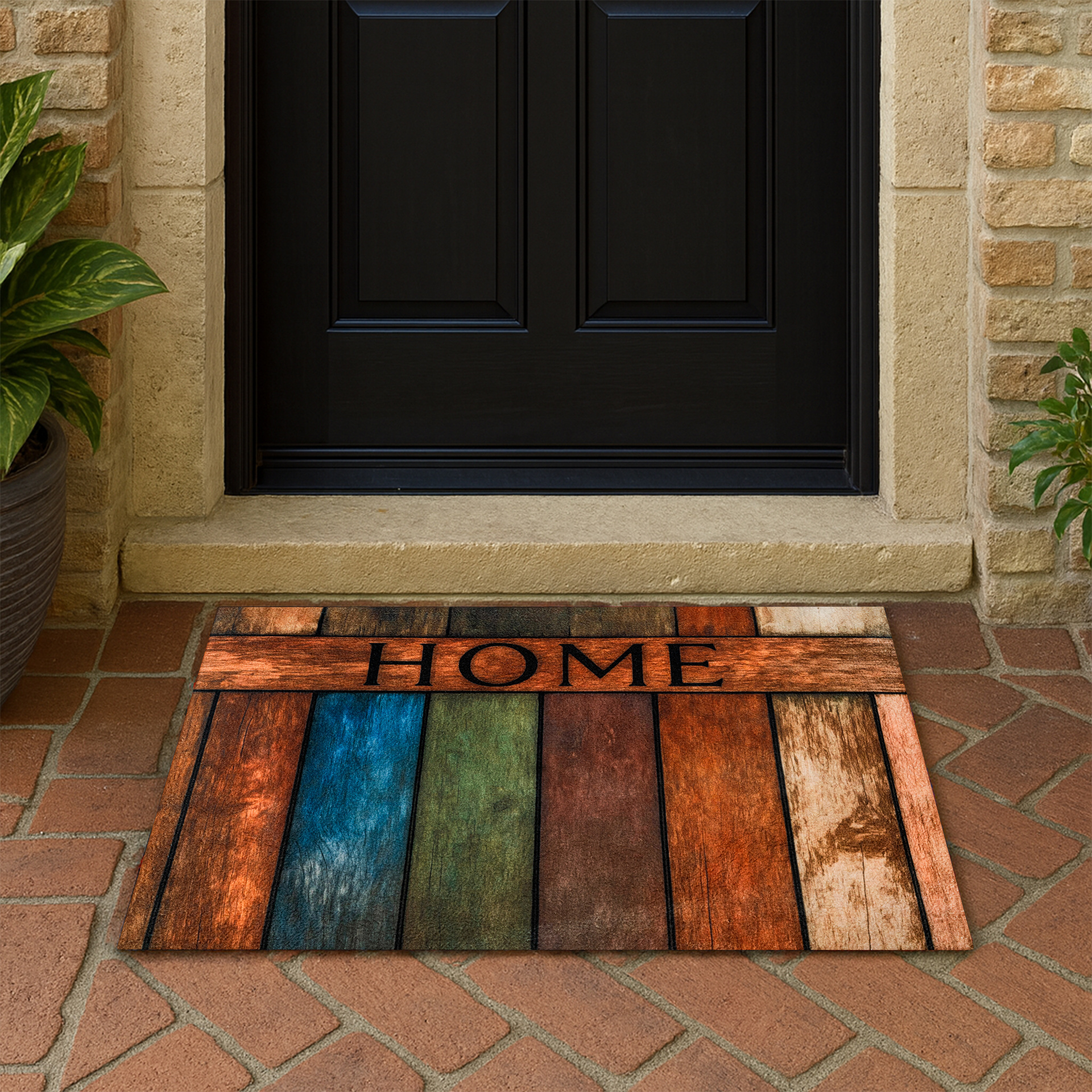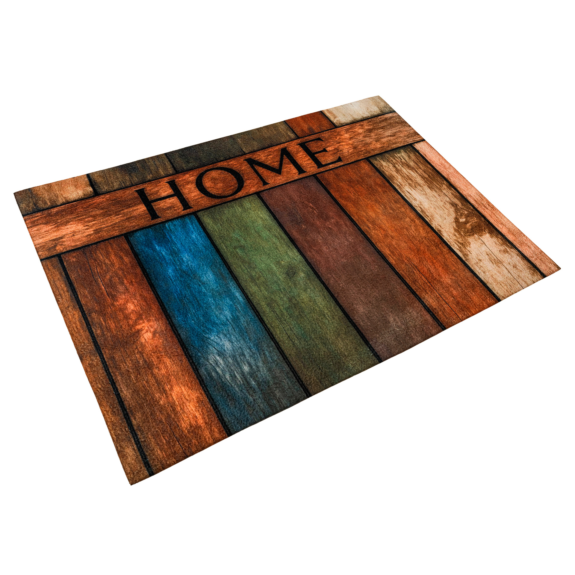 Wierzch wykonany jest z poliestrowego włókna z wyraźnym, estetycznym nadrukiem - dzięki czemu wycieraczka jest nie tylko praktyczna, ale również stanowi element wystroju. Na spodzie znajduje się antypoślizgowa guma, która stabilnie trzyma się podłoża i zapobiega przesuwaniu się maty podczas użytkowania.